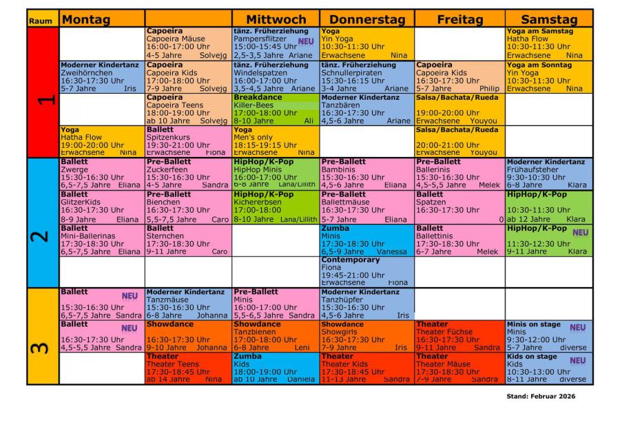 Wir haben nicht in allen Kursen Platz für neue Kinder. Deshalb bitte unbedingt telefonisch einen Schnuppertermin vereinbaren.